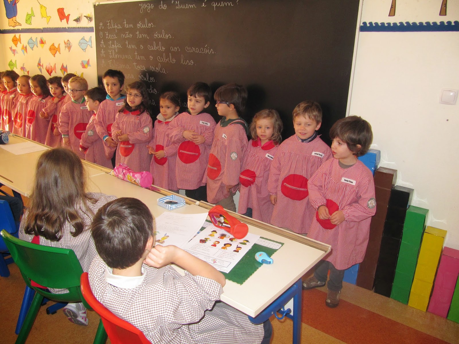 Hoje a turma do Bibe Encarnado fez uma surpresa à turma do Bibe Castanho (1.º Ano).